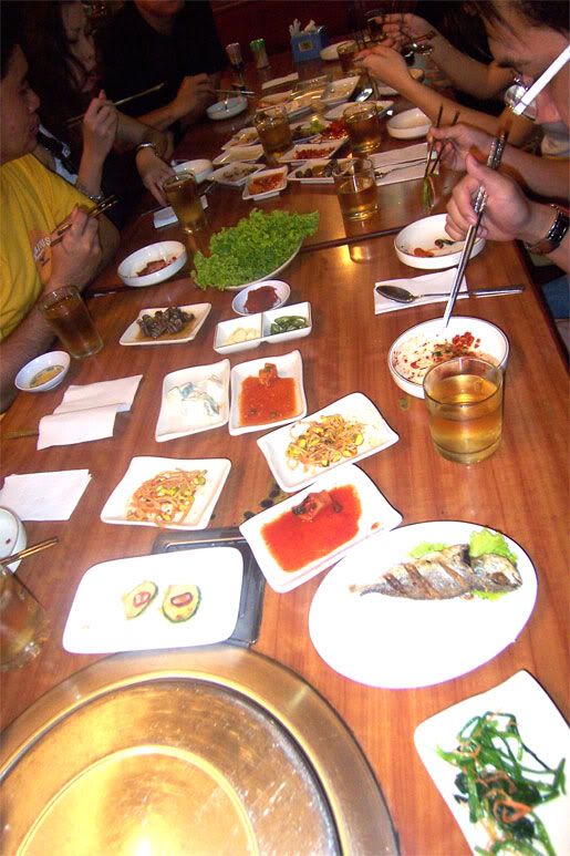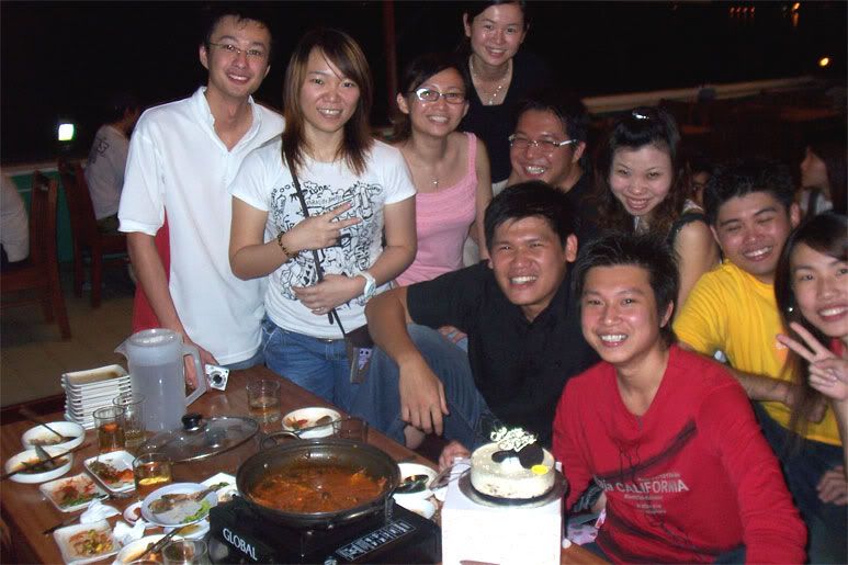哈,来些照片~~昨天啊,是vincent和国祥的生日,我们也照常的去庆祝了一番。。蛮开心的。。 :) 一开始啊,我们浪费了很多时间在点菜,哈哈,因为我们都看不动。。英文不是英文的,华文也不是华文的,就乱看图片然后点点点。。哈。。其实,也不是很爽的样子,只是前菜很多咯,而且也不是很好吃的前菜。还是烤肉最好吃咯,因为是唯一热的东西。。韩国人的火锅啊,其实也只有一种味道,就是辣。然后?什么都没有了,虽然配料很多啊,比如,年糕,香肠, 还有。。一些奇怪的东西,可是味道啊。。。就。。没什么吸引我的,所以也吃不是很多。 这个就是前菜,不好吃的。。 这个是比较好吃的。。。 这个大合照~可是服务生抓的角度也太 了 说一说前天的考试,蛮。。。  的。。。哈哈,怕怕。。希望老天保佑。。我真的有努力去读书。。请你们不要让我不及格。。说起那天啊,我是很开心的。好久没有那么的开心了。虽然大半的时间在考试,可是之前,之后我都很开心。。一大早起床,打了电话给他,他说他现在出门来我家载我了,哇,这是很难的得!!哈哈,所以我很开心啊,就很开心的冲凉,开心的准备,开心的等他来,可是啊,我还没冲好他就到了。。  好快。。你啊, 驾车小心点知道吗?我会很担心的。。然后呢,就一起吃早餐啊,过后就一起念书去,可是啊,念的都是我,然后他玩电脑。。。  。。。不公平。。还唱歌给我听咧。。哈哈, 可爱~~希望你考试也很顺利的及格。。:) 念着念着。。。我也睡着了。。。哈哈。。过后发生了什么事我也不知道了。。哈哈哈哈哈哈哈哈哈。。。然后啊,晚上就在我家玩耍,跟token玩。。很开心哦!然后跟家人吃饭。。聊天。。 就这样过了美好的一天。 凯杰, 谢谢你。带给我那么快了的一天,平凡却充实。能这样我就很开心了,就算是吃个早餐,我也很开心。你说,这样的日子,以后会很多。。真的吗?我一直在等。。 :) 。你要加油哦。