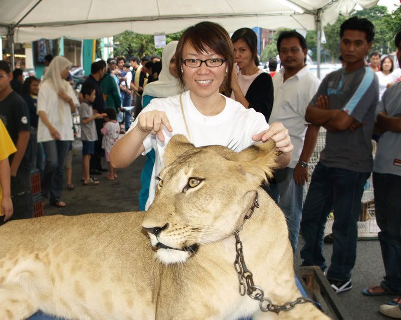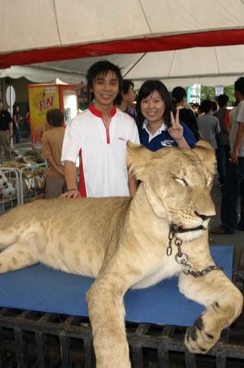 我与蛇  pentex的可爱小孩和olmypus的小姐  这个就是传说中我卖的相机~  我与狮子~~(LEO,我们的合照耶!哇哈哈)  我终于忙完了!!!!耶!!!!不过好累得哩~现在喉咙痛的不能讲话了,也许是这三天都把话说完了~哇哈哈。好开心的说~这三天的成绩不是很好的咯~大概只卖了20台相机~!不过全部的货只有30粒啦~哇哈哈~这次的fair人潮不是很多,所以造成了这样的成绩咯~这几天都下大雨的~ 阿!!还有阿,昨天还有动物园的人带狮子来了~还有猴子阿,蛇阿~好开心地哩!好像养一只狮子~哇哈哈,真的好酷~不过我还是享年新加坡的白老虎!那个是更高级的~~哇哈哈。 喉咙好痛哦, 痛的我打字打得很开心~因为阿我可以把我要说的话全部表达出来~~嘿嘿~ showtime人数已经累计了425人!哇劳!是厉害的咯~!!继续加油加油!! 阿~ 这次的fair看了很多不同的人类。这个世界真的是好神气阿!您真内行~pentex的大只佬还有那个可爱的pentex小伙子带来了很多的欢笑~昨晚吃东西也是一只讲话讲话的~笑到我眼泪都流出来~噗~ 我现在要去洗澡了~然后出门槛医生还有去meet 阿豪哥~ 后会有期!!!! 等下回来访我和狮子,蛇的合照~!:P 哎呀,工作忙碌了3天,结果今天病倒了~下午去看了医生,原来发烧了~37.9度,然后回来吃药就睡着了。现在是晚上接近10点钟,感觉比早上好很多了,头也没那么重了~不过还是热热的,等下洗个澡再睡觉呗~ 这三天的生活过的很累的咯,早上闹钟响了都不舍得起床的哩。好久没有这样的工作了~哇哈哈。还蛮开心地咯~结果卖出的相机成绩是算不错的,因为我卖的只有三个款式,每一个款式是有10粒~然后一台卖出9粒~一款卖了3粒?一款卖了5粒.. 所以基本上来说是ok的。因为这次的fair人潮的确少的很~很多的时候都是排苍蝇地。还有阿,sony的erwin是超帅的咯~哇哈哈,害我一直偷看他~安德乳不要生气厚~看一下又不会怎样~哇哈哈哈~~ 嗯~每天阿早上7.30 就起来,晚上回到家上床睡觉都已经是2点了 >_<~ 好痛苦~ 哎~一切都过去了!接下来呢~有一些设计的生意要处理一下,希望那里能赚点外快来花花~哇哈哈~因为阿,毕竟财务规划事业并不是一天两天能够吃得开的~还是需要一些时间来消化~嗯~还有什么呢~大概就酱了呗~ 贴照片咯~!! 我和狮子~厉害呗~