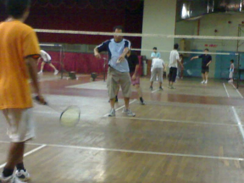 哒铛~啷~~!那位蓝色先生就是当年羽球场的健将~!我爸爸!哈哈~那天他突然跑来加入我们打球的行列~宝刀还是未老的。只是跑不动了。哇哈哈哈。我在一旁观看~看着看着~就涌起很多以前他常带我来这里看他打球。。在我小学的时候就住在这个JJ sport complex的对面~几乎每个1,3,5都会来这里报道。我去游泳,爸爸去打球~我游好了,他还在打我就在一旁看。就好像现在爸爸带小孩来球场的孩子一样,静静的坐在旁边看。突然有很多的感慨。但是说不出。。。最近羽球亚赛在新山举行。有人就有叫‘我们’一起去看。可是,我不想。。我不想。。我希望不会碰到你。。。 话说回来,最近有在懊恼一些事情。不知道要怎么解决。这里补了一个洞,那里又来一个洞。然后还告诉我后面还有更大洞。要我怎么去消化?我一直在想,如果没有任何关系的牵扯,也许我会过的开心些。失望的是,你只是在等人帮你补。有没有想过,为什么这个人要/应该帮你补?我有些冲动的念头。。。。。你要小心。。。我是很冲动的。。。。T.T